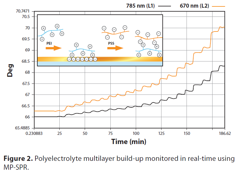 122024-07 多参数表面等离子体共振(MP-SPR)可以在不知道薄膜厚度和折射率的前提下测定薄膜的厚度和折射率。采用MP-SPR双波长法对聚电解质多层进行测量,并采用LayerSolver™软件模块进行分析。发现5层双层膜...